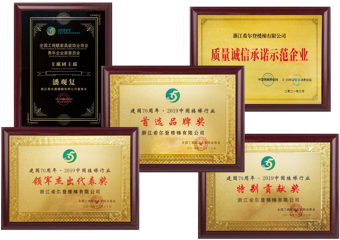 在不斷提升希爾登品牌和企業(yè)實(shí)力的同時,希爾登一直熱心參與樓梯行業(yè)的健康發(fā)展;參與創(chuàng)立全國工商聯(lián)樓梯專委會并被推選為中國樓梯品牌聯(lián)盟執(zhí)行主席和樓梯專委會執(zhí)行會長;憑借在行業(yè)內(nèi)的專業(yè)地位,希爾登參與了《木質(zhì)樓梯》,《木質(zhì)樓梯安裝驗(yàn)收和使用規(guī)范》,《住宅內(nèi)用樓梯》,《建筑用玻璃與金屬護(hù)欄》四個國家和行業(yè)標(biāo)準(zhǔn)的起草工作。先后榮獲“中國樓梯十大品牌”、“金木樓梯領(lǐng)軍品牌”、“中國泛家居發(fā)展中企業(yè)500強(qiáng)”、“中國家裝行業(yè)金鉆獎”、“金屬木質(zhì)樓梯一級資質(zhì)”等二十多個榮譽(yù)和稱號。我們幾乎參與和見證中國樓梯發(fā)展歷程中的所有重大事件。希爾登過去,現(xiàn)在和未來都是中國樓梯的標(biāo)桿企業(yè)。